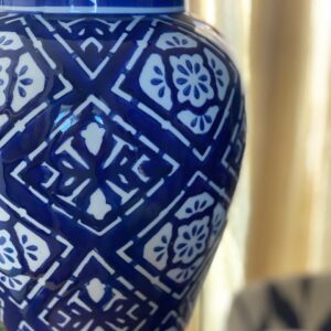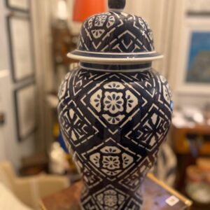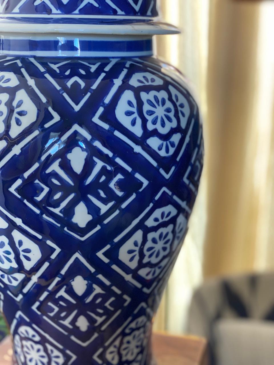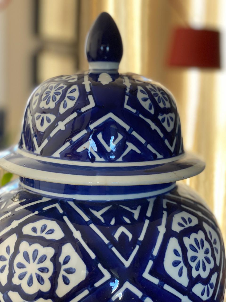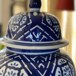 Potiche Grande com Tampa Porcelana Branca e Azul